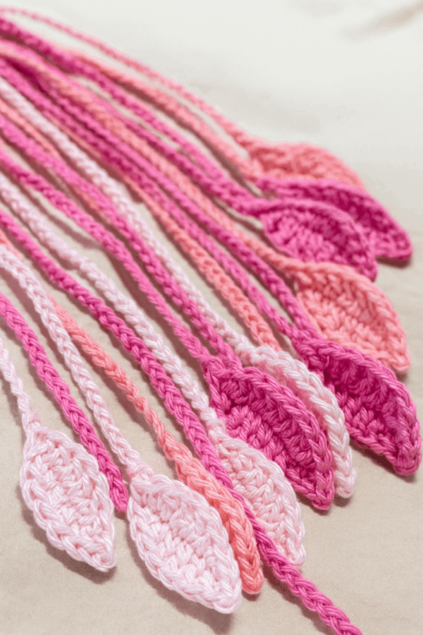 Diseño: flor central con hojas tejidas en la parte inferior.