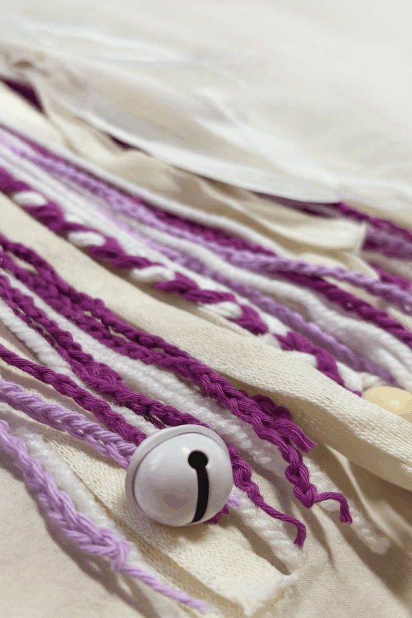 Los colgantes combinan cintas, trenzas, cuentas y plumas blancas, creando una composición ligera y armoniosa que transmite serenidad y energía positiva. Cada elemento ha sido cuidadosamente seleccionado para realzar la belleza del conjunto y reflejar el valor del trabajo hecho a mano.